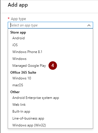 Select ‘Managed Google Play’ as the desired app type. Managed Google Play is the app type for all Android Enterprise deployments (Kiosk, Fully Managed and Work Profile).
