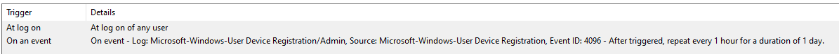 Windows actually activates the task ‘Automatic-Device-Join’ that is located in ‘Microsoft – Windows – Workplace Join’.