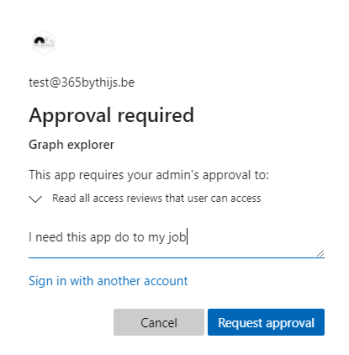 Now he should contact an administrator and ask that admin to consent that app manually. This procedure is really cumbersome and not user-friendly at all.