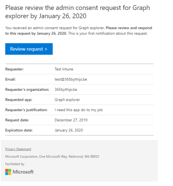 The only thing I am currently missing is Graph support for the requests. Currently only email notifications are supported, but with Graph support a lot of custom actions could be taken so companies can integrate this in their standardized approval flow.