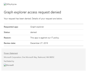 Before an application can be integrated into a tenant, it needs to be added. This is done through the ‘consent framework’. An app will prompt what permissions are needed for the app to integrate into the tenant and the user will have to accept or deny those permissions.